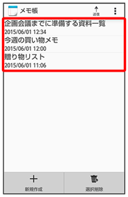 メモ帳一覧画面またはメモ帳表示画面で、アクションバーの