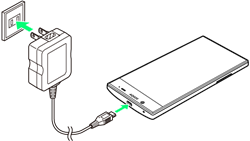 ACアダプタのプラグを起こし、家庭用ACコンセントに差し込む充電を開始すると、充電/着信ランプが赤色に点灯します。フル充電になると消灯します。