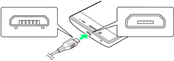 本機の外部接続端子に、ACアダプタのmicroUSBプラグを差し込む