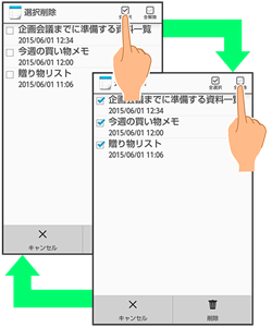 (全解除)が表示されているときは、アイコンをタップすると選択や解除を一括で行うことができます。