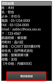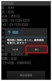 読み取った情報が入力された電話帳編集画面が表示されます。