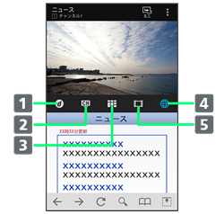 縦画面で視聴するときは、画面中央に表示される情報切替バーのアイコンをタップして、画面下部の表示を切り替えることができます。その他の見かたは横画面と同様です。