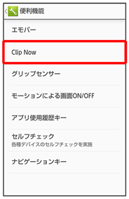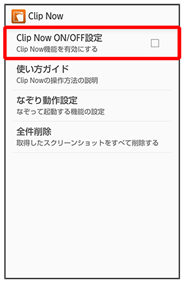 (Clip Now設定)をタップしても、Clip Now画面が表示されます。
