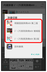 以前に辞書を起動していたときは、最後に利用した内蔵辞書が表示されます。