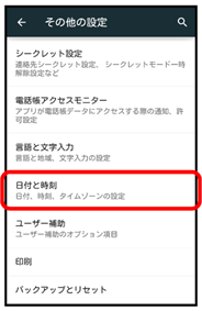 | 日付と時刻の自動設定 | ![]() | 日付と時刻を自動的に設定します。 |