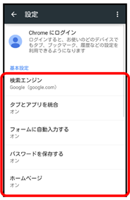 Chromeの動作を設定できます。設定できる項目は次のとおりです。
