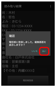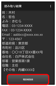 読み取った情報が入力された電話帳編集画面が表示されます。