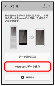 本機の電話帳、メール、ブックマーク、スケジュール、メモ帳、ユーザー辞書/学習辞書、エモパーを、SDカードに保存することができます。