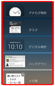 スタート画面でウィジェットを表示するには、画面を左にドラッグ/フリックさせてください。