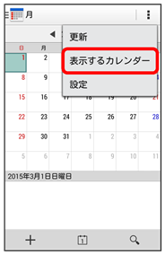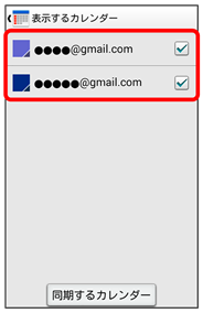 をタップすると、アカウントに登録しているカレンダー別に同期が設定できます。