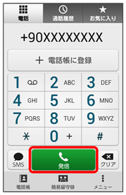 日本(国番号:81)にかける場合はあらかじめ電話番号を入力し、