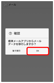 初回起動時に後で実行をタップしたときは、次の操作で標準メッセージアプリで受信したメールの移行ができます。
