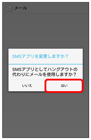 メールを初めて起動したときは、Wi-Fi利用時にMMSを送受信するための設定と、(ハングアウト)で送受信したSMSをインポートするための設定を行います。