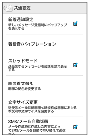 | SMS/メール自動切替 | ![]() | 送信時に、自動でMMS/SMSを切り替えるかどうかを設定します。 |