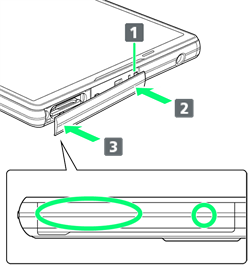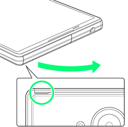 ミゾ(○の位置)に指先をかけて、カード挿入口キャップを開く