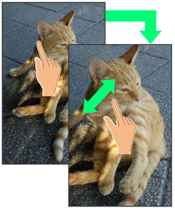 2本の指で画面に触れ、指を開いたり(ピンチアウト)、閉じたり(ピンチイン)します。