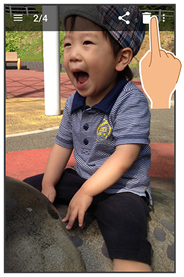 アプリケーション画面や設定画面上部のタイトルが表示される部分を、「アクションバー」と呼びます。アクションバー右側には、その画面でよく利用される機能のアイコンが表示されます。