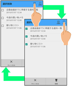 (全解除)が表示されているときは、アイコンをタップすると選択や解除を一括で行うことができます。