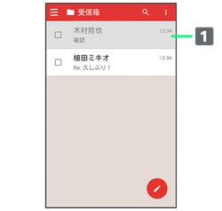受信箱画面でメールの