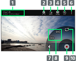 画面左上の番組名などが表示されていないときは、フルセグ/ワンセグ視聴画面の映像部分をタップします。