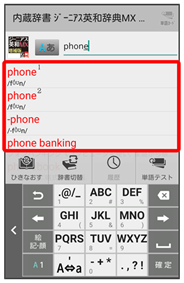 内蔵されている辞書を利用して、単語の意味を調べることができます。
