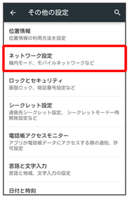 | モバイルネットワーク | ![]() | ネットワークモードなどを設定します。 通信事業者について詳しくは、「海外でご利用になる前に」を参照してください。 |