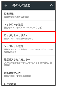 | 画面のロック | ![]() | 画面ロック解除方法を設定します。 |
