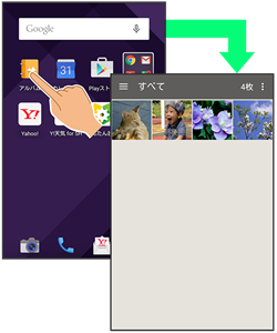 項目やアイコン、画面のキーなどをタップすると、該当する操作の画面に移動します。