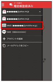 | メールアカウントの追加(IMAP) | ![]() | Y!mobile メールアドレス以外のメールアカウントを利用するときに選択します。 |