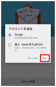 あらかじめGoogle アカウントでログインしている場合は、アカウント設定画面が表示されません。別のアカウントを追加するときは、「