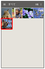 スロー録画で撮影した動画をスロー再生することができます。スロー録画で撮影した動画には/が表示されています。