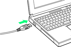 microUSBプラグのコネクタを持って、プラグの向きに注意し、図のようにまっすぐ差し込んでください。