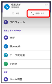 着信画面から電話を受ける