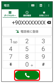 国番号のあとに相手の電話番号(先頭の「0」を除く)を入力