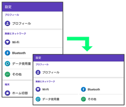 本機を横向きに回転させると、表示画面も横表示に切り替わります。