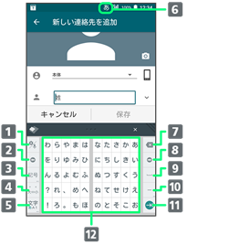 文字種を切り替えます(ひらがな/半角英字/数字)。ロングタッチすると文字入力の設定を行います。