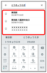 選択候補から住所や都市、施設名などをタップ