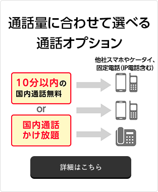 | 通話 | 従量(20円/30秒) | 10分以内の 国内通話無料※1 |