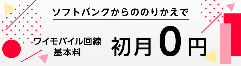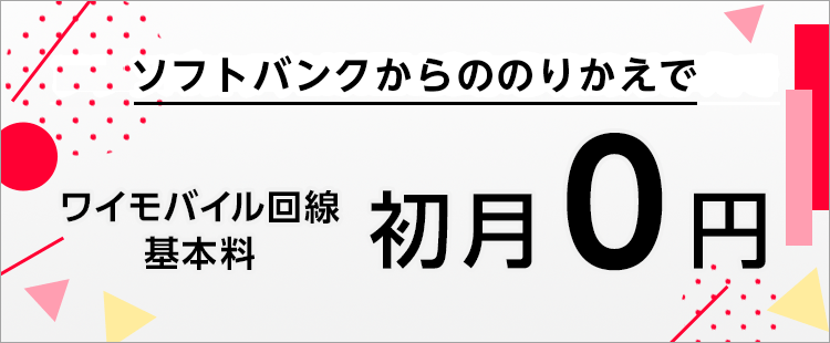 ソフトバンクからのりかえで、ワイモバイル回線の基本料、データ定額サービス料、対象のオプションサービス料および月額使用料が初月0円!