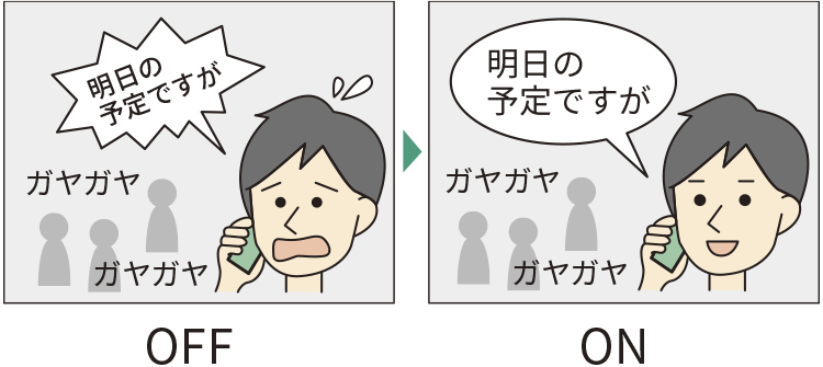 周囲が騒がしくても、自分の声を明瞭にして相手に伝えることができます。