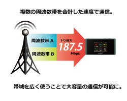 キャリアアグリゲーションに対応し、下り通信速度最大187.5Mbpsを実現。
