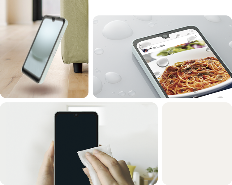 防水・防塵※1・耐衝撃※2に対応、除菌シート※3で清潔に保てます。