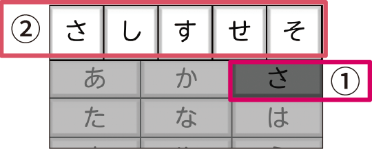 例:「せ」を入力する場合 「さ」をタッチし、表示された 「さ行」から「せ」をタッチ