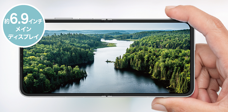メインディスプレイは約6.9インチの大画面。開けば映像やゲームが大迫力で楽しめます。