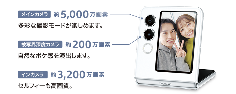 [メイン] 約5,000万画素 + 200万画素(深度) [サブ] 約3,200万画素 |