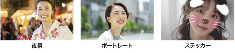 いつもの写真を一味違ったテイストに表現する、多彩なフィルターや撮影モードを搭載しています。