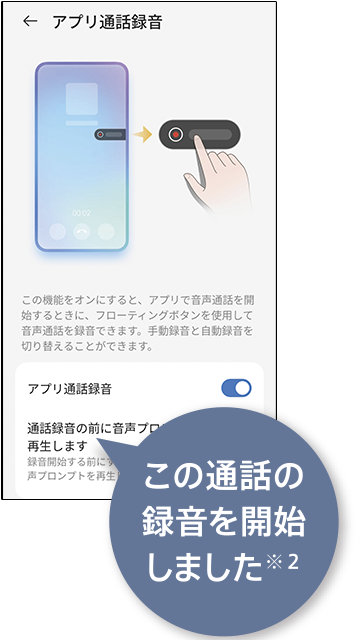 アプリの音声通話に対応。※1大切な通話を簡単保存。詐欺対策にも有効です。