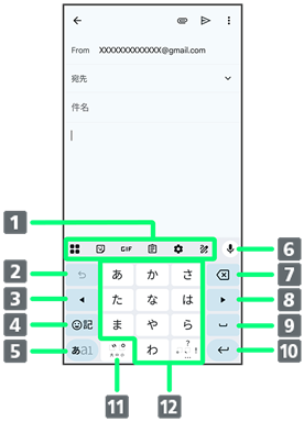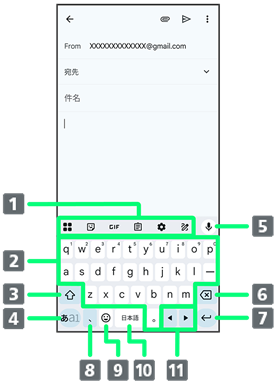 | 1 | 複数のレイアウト・言語のキーボードを使用している場合は、ロングタッチするとキーボードを変更することができます。 |