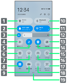 クイック設定パネルの見かた
