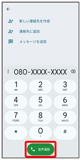 - ダイヤルキーをタップして相手の電話番号を入力